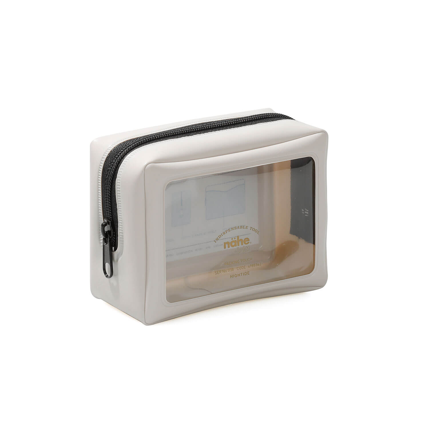 A zippered pouch made of PVC with a transparent front by Hightide. Comes with slit pockets on the inside and back.