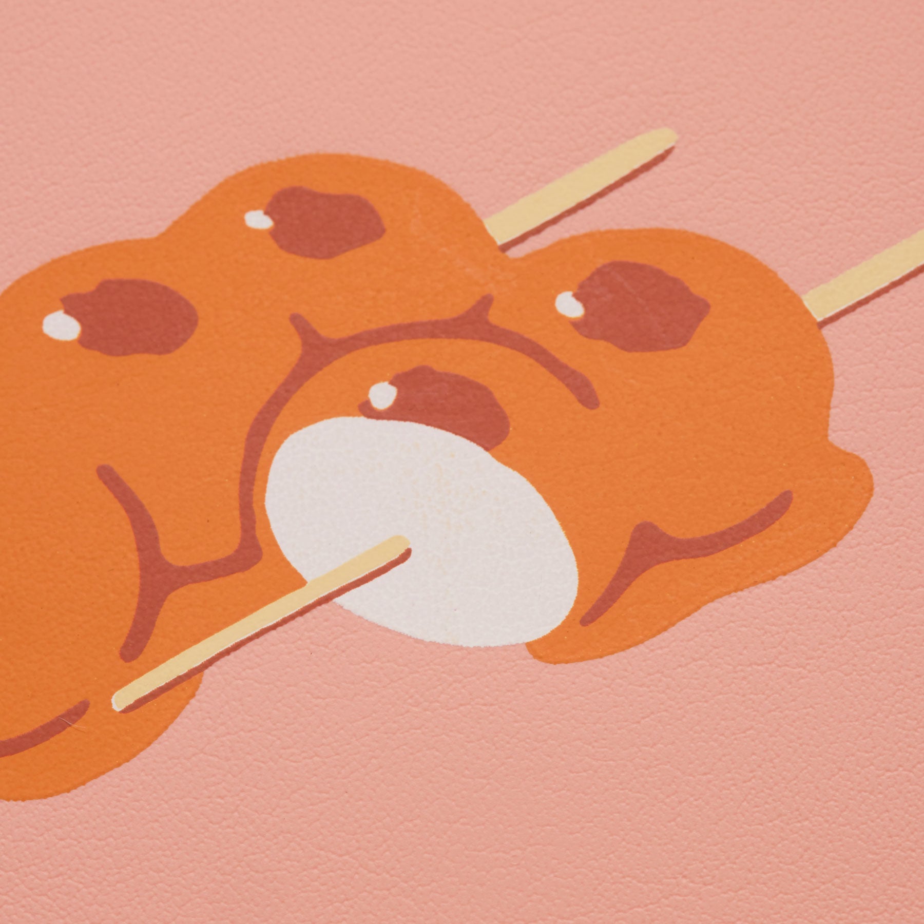 Mitarashi dango are a type of Japanese dango (rice dumpling) covered with a sweet soy sauce glaze. They are skewered onto sticks in groups of 3–5 and are characterized by their glossy glaze and slightly toasted flavor.
