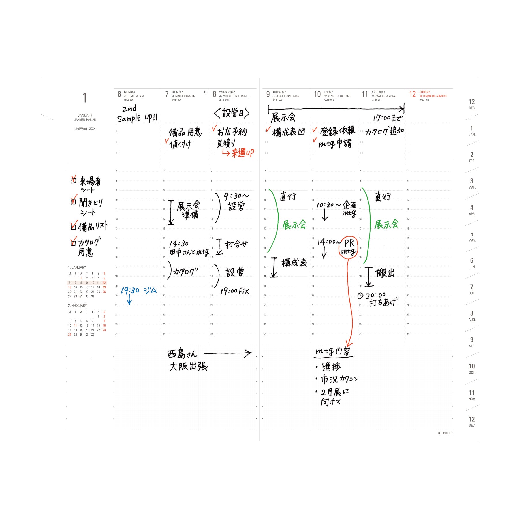 The following page of the monthly schedule is a 4-column to-do / task notes so you can do a follow-up notes and logs - any extra things you wanna add. This is a brand-new 2026 layout design! Upgraded from the 25N planner to PasPier Cream paper to resist bleeding from fountain pens and markers.