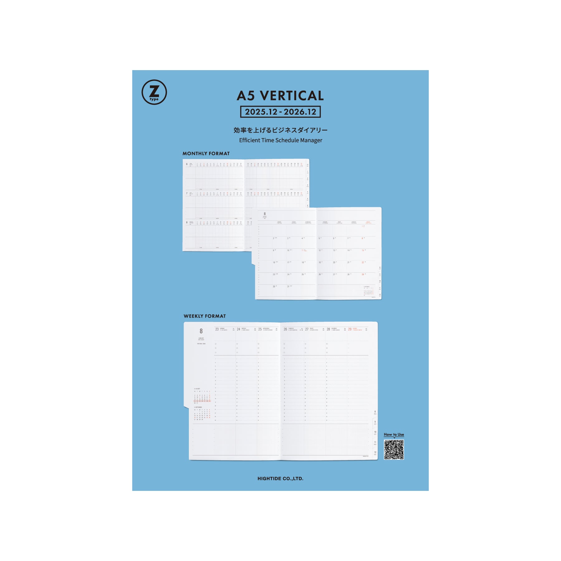 An A5 Vertical planner refill for 2026 containing both monthly/weekly sections by Hightide. Monthly and weekly sections are repeated consecutively per month.