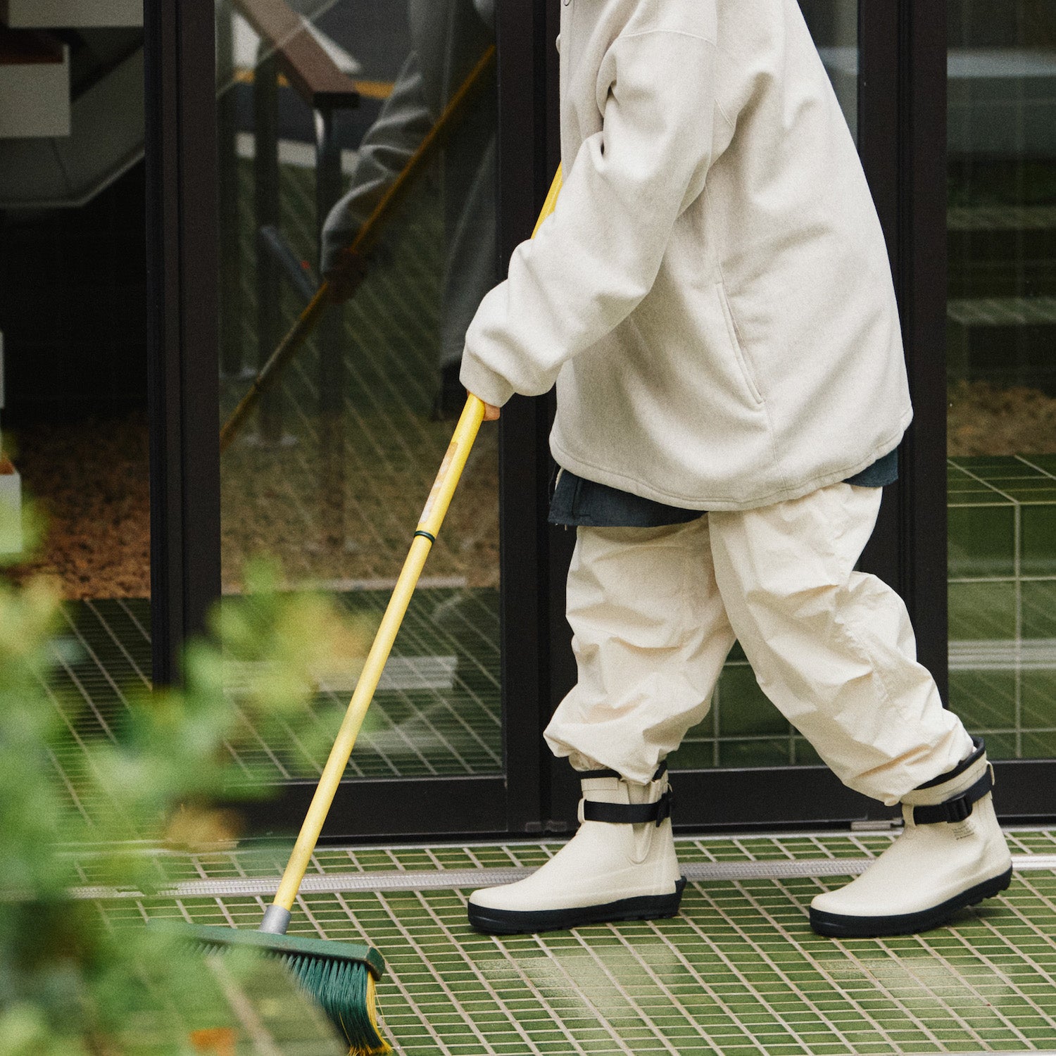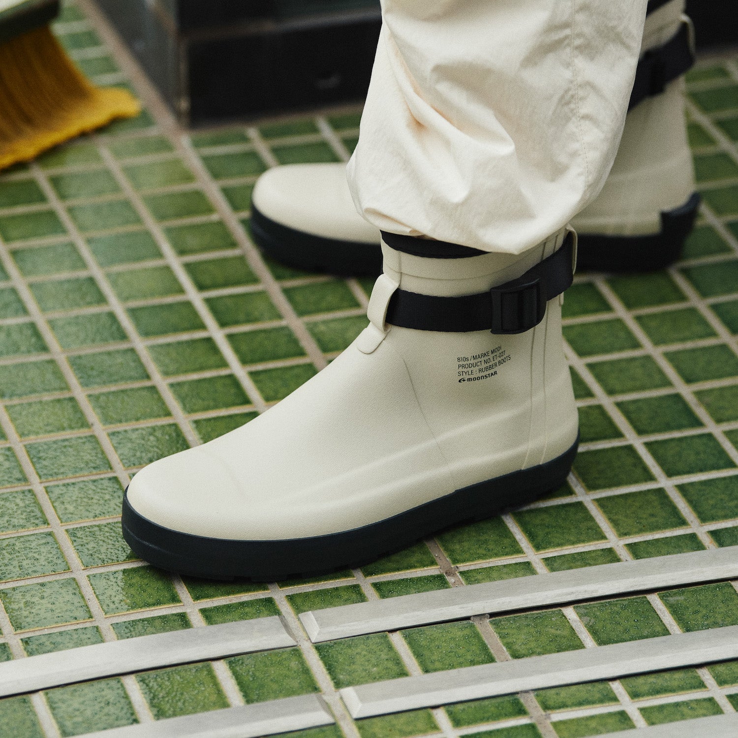 A slightly updated version of the MARKE - a pair of versatile work rubber boots for daily use. The buckle design allows for easy on/off, while the silhouette improves fit. Understated piping design at the opening of the boots has been implemented for comfort.