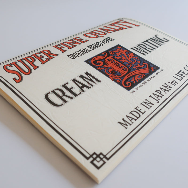A ruled landscape letter pad in A5 size by LIFE with the brand's original "L-writing paper" in cream color.
