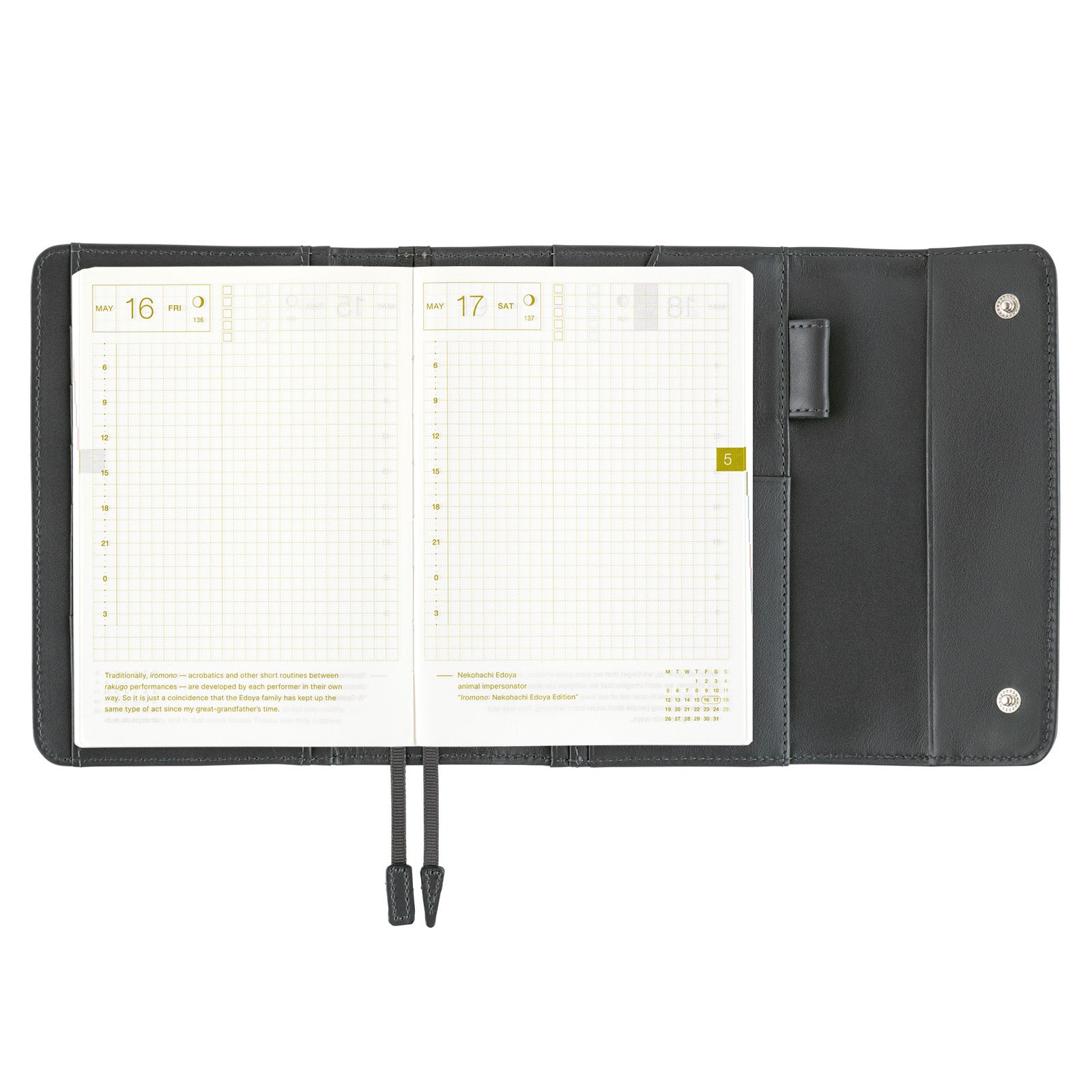 A6 Tri-fold style Leather Cover in Charcoal Gray for Hobonichi A6 Original Book Planner. Made of high quality charcoal gray leather which wraps around your planner nicely with two small snap button closures.