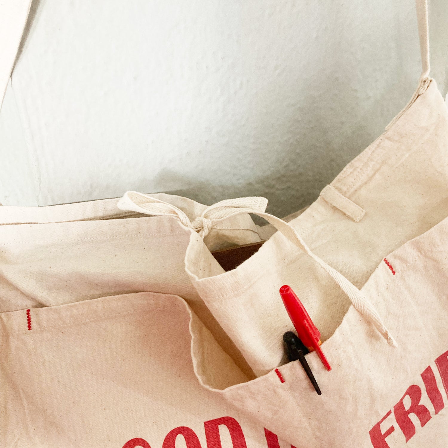This 2-way apron can be used as a waist-wrap type apron or a shoulder bag with straps tied. Comes with belt loops for a better fit & stitches have been added to the front pocket so contents would be kept safely.