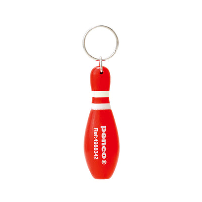 A ballpoint pen keychain in the shape of a miniature bowling pin by  penco.