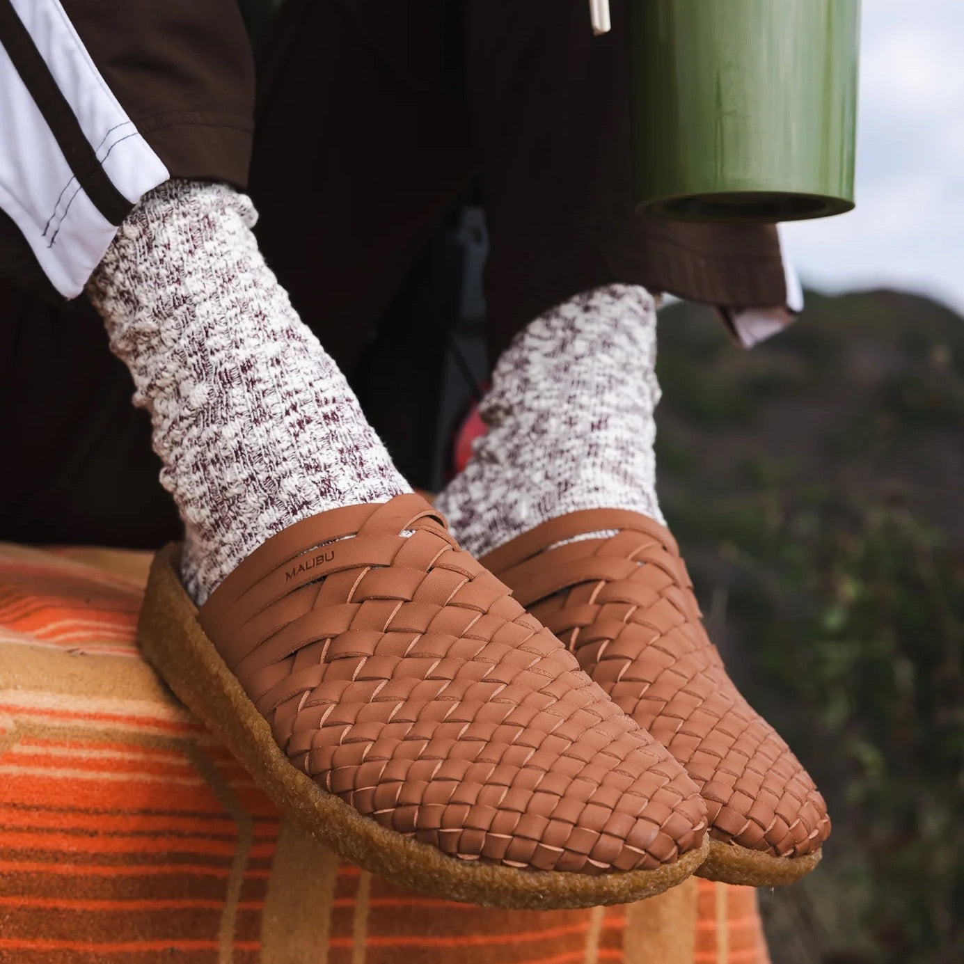Malibu Sandals' staple - the basket weave mule design features a unique hand-woven strapping pattern highlighting the visual continuity of the upper.