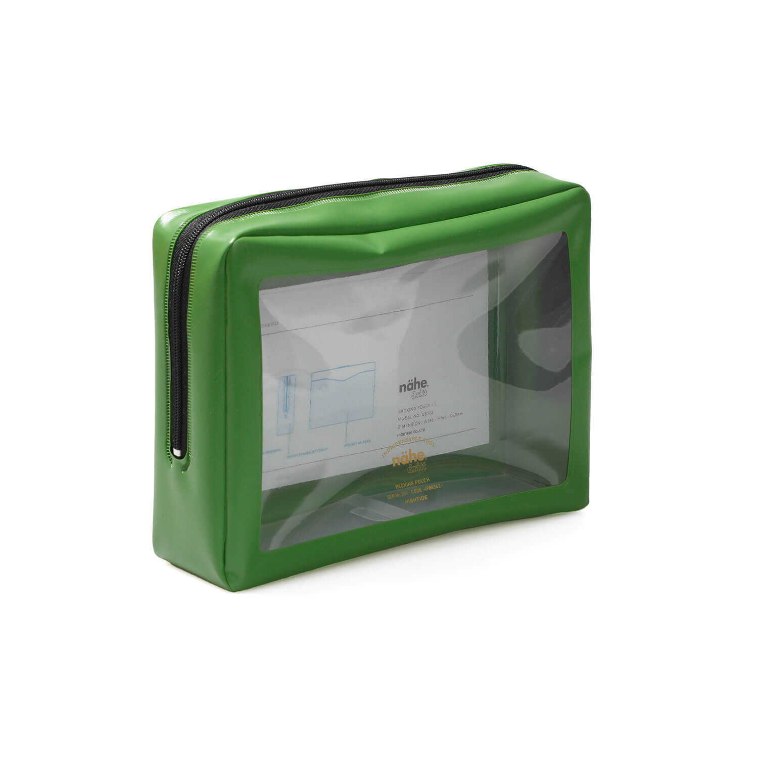 A zippered pouch made of PVC with a transparent front by Hightide. Comes with a slit pocket on the inside and back.