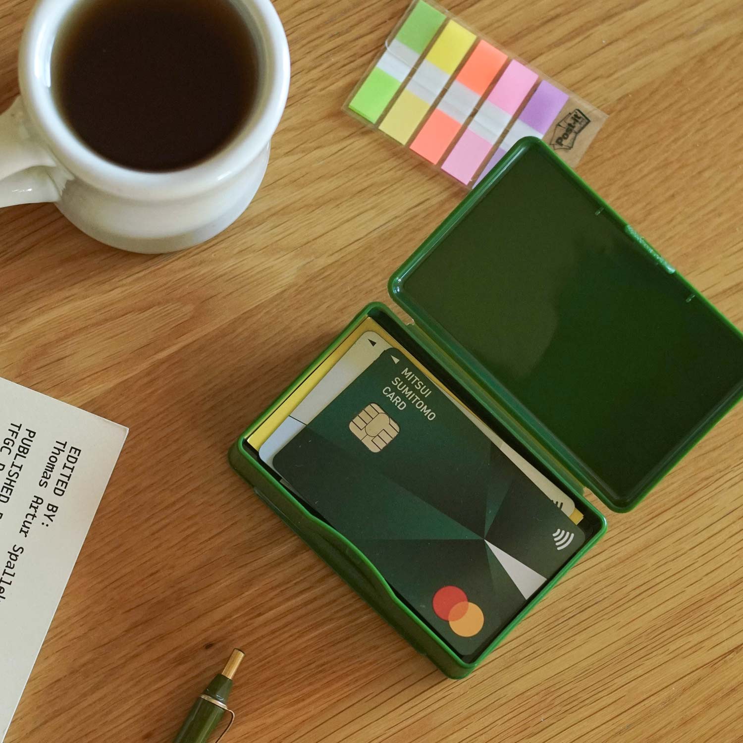 The back side has no dividers and can hold about 40 business cards or stickers. This storage box is palm-sized and convenient to carry around.