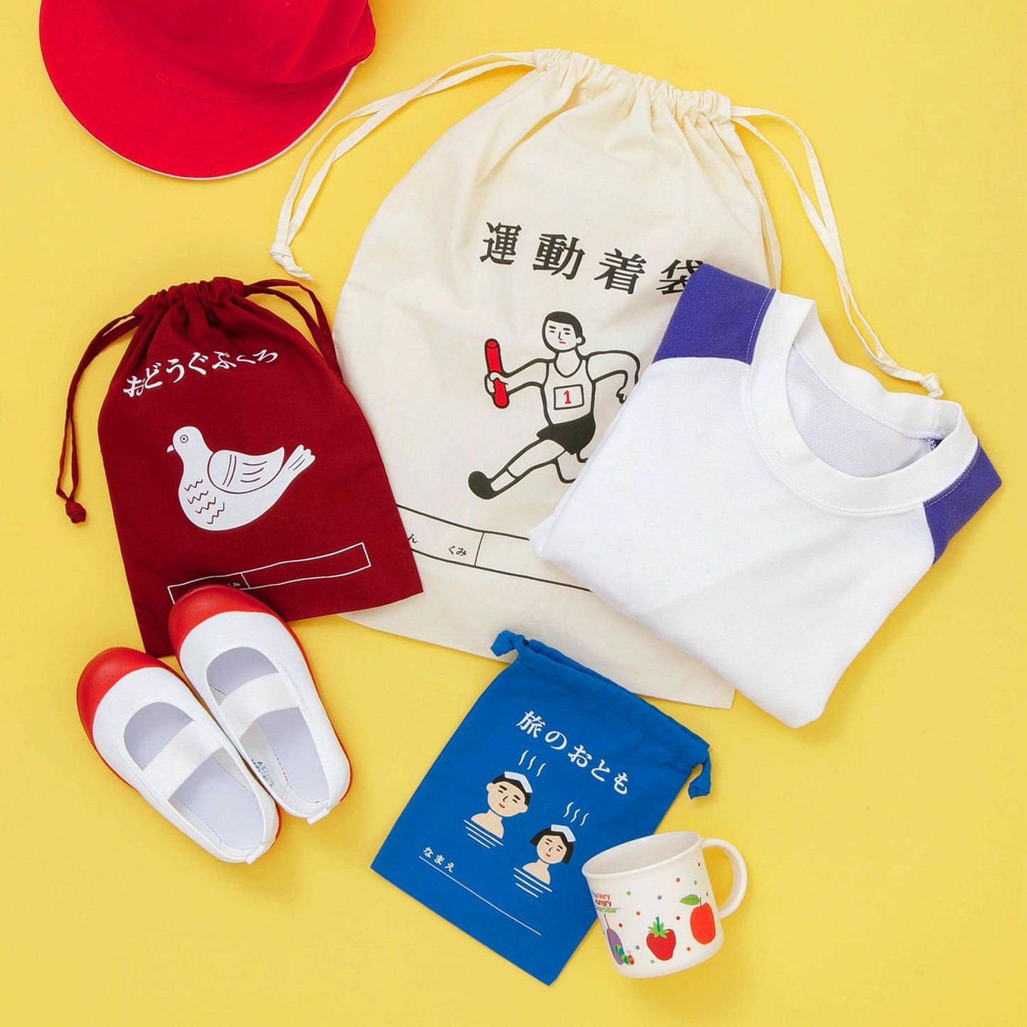 A large lightweight cloth drawstring bag, reminiscent of the gym bag used by elementary school students in Japan.
