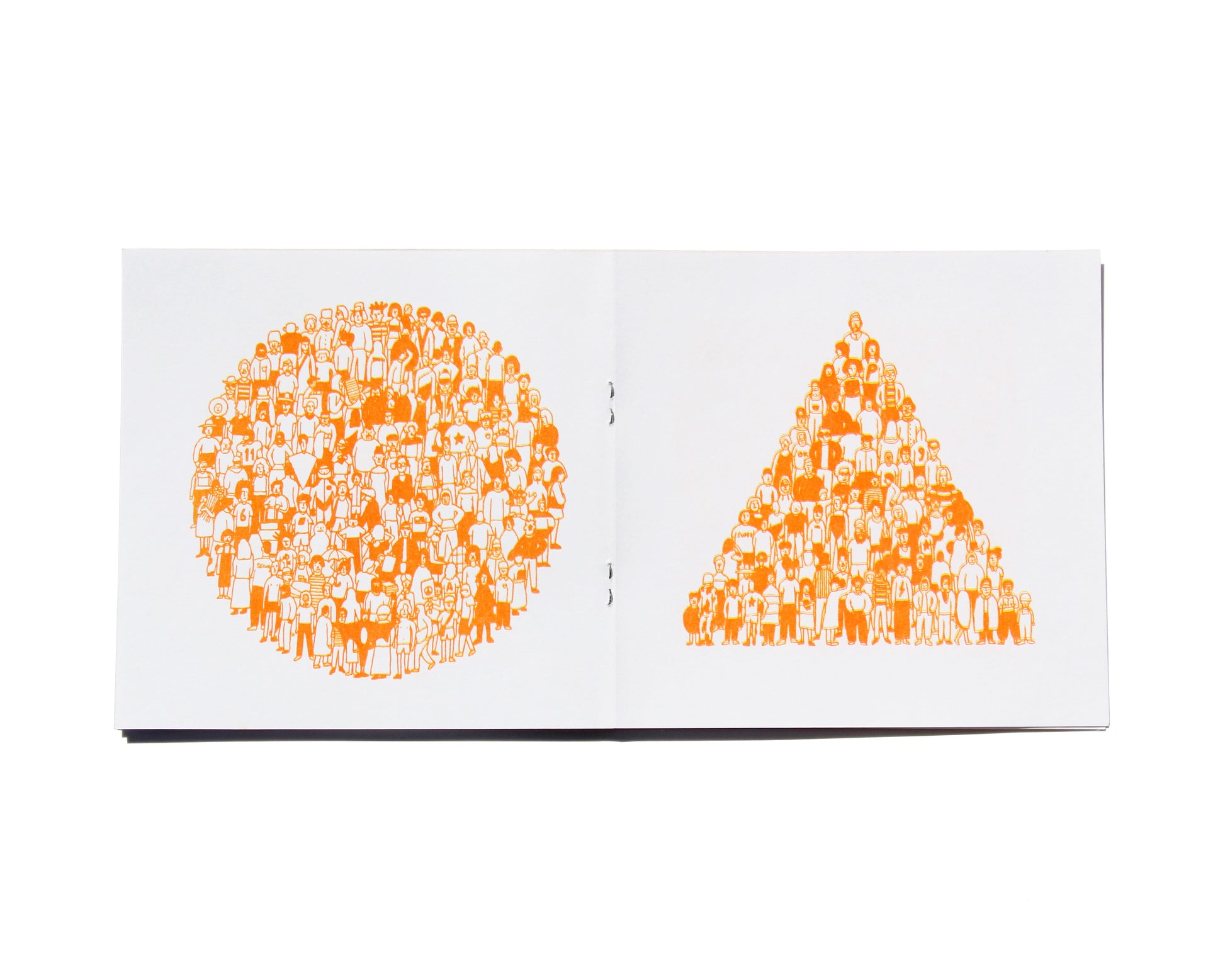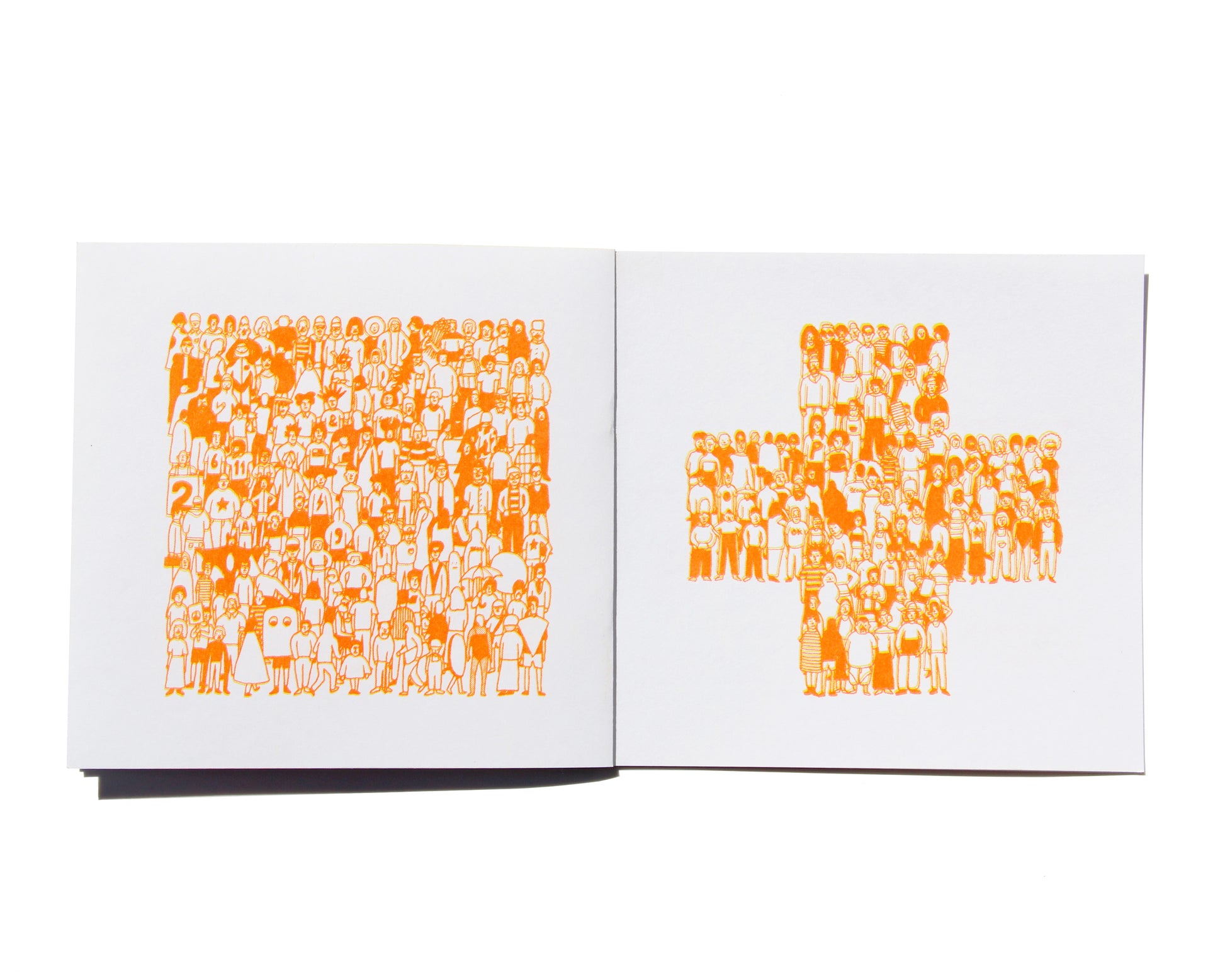 "Community" is a small book that contains a collection of figures that Keiji drew. The original characters are all an inch tall and was later digitally curated and placed to create a shape to showcase it's versatile nature. It's a fun little book with many surprises.