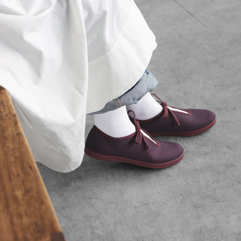 Lite Prim Canvas Shoes by Moonstar Fine Vulcanized collection. Casual and elegant, a simple pair with a one-piece canvas upper and shoelace piping.
