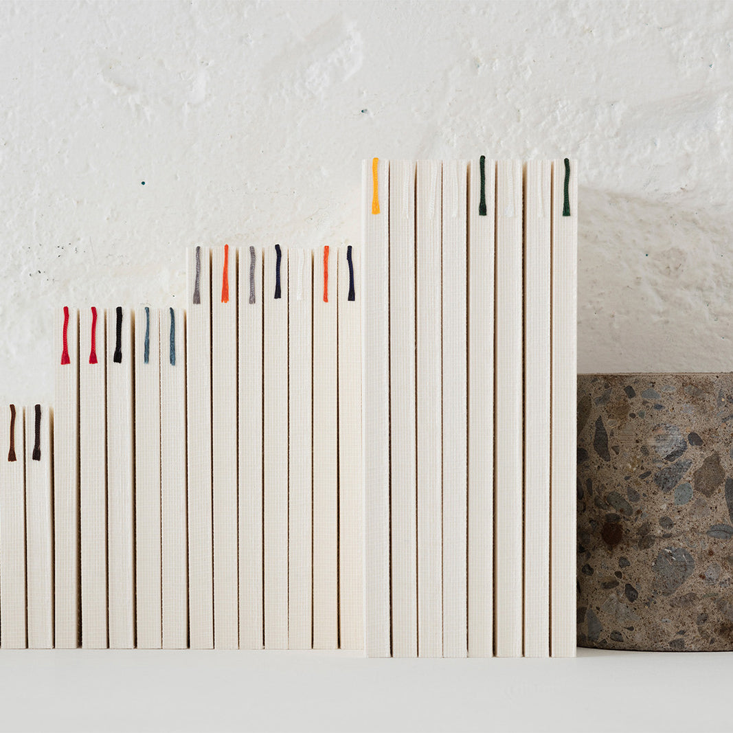 A soft cover blank notebook with bleed and smear-resistant MD paper by Midori. Each page has a bold centerline that divides the page into top and bottom sections.