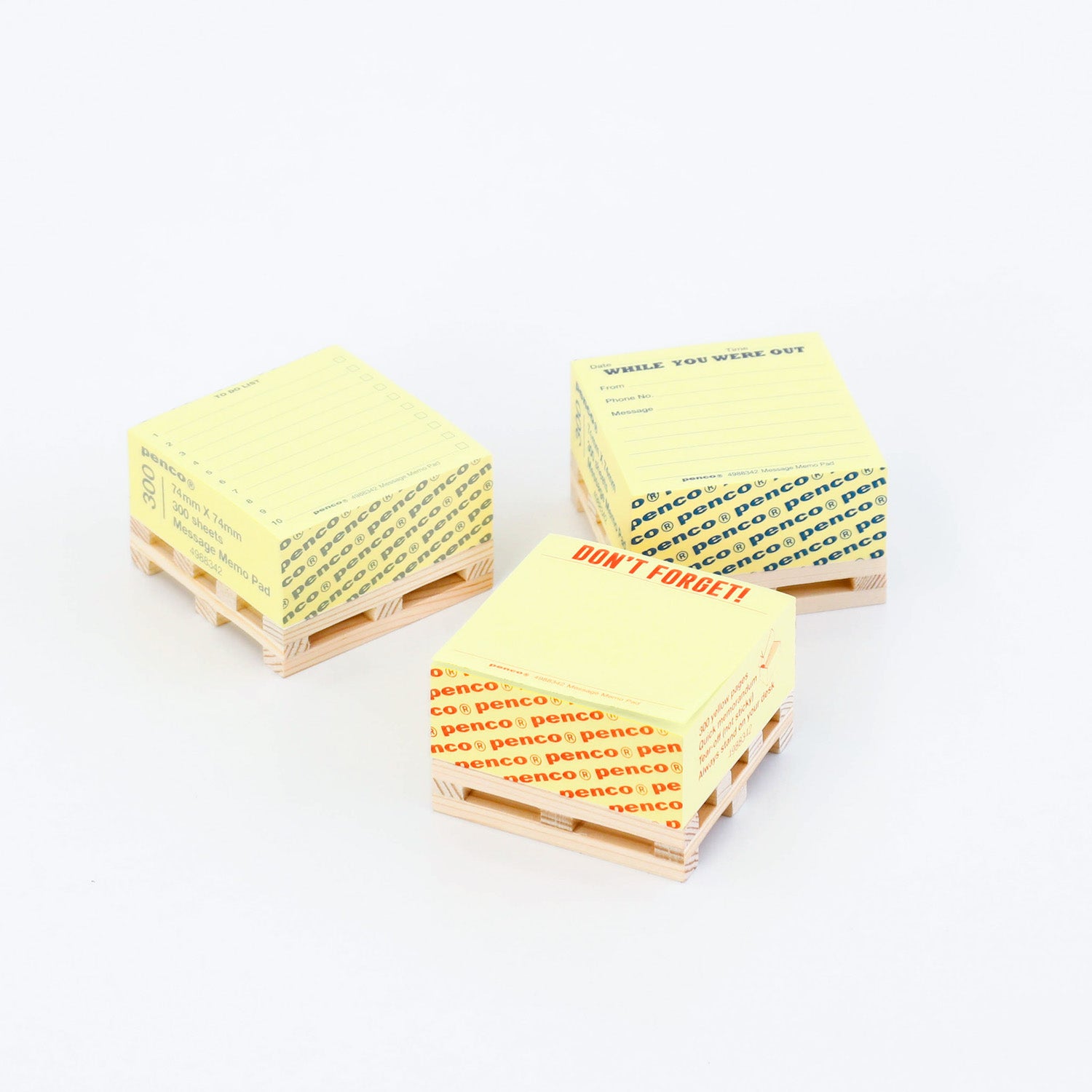 A memo block with a wooden mini palette. Comes in a pack of 300 memos!