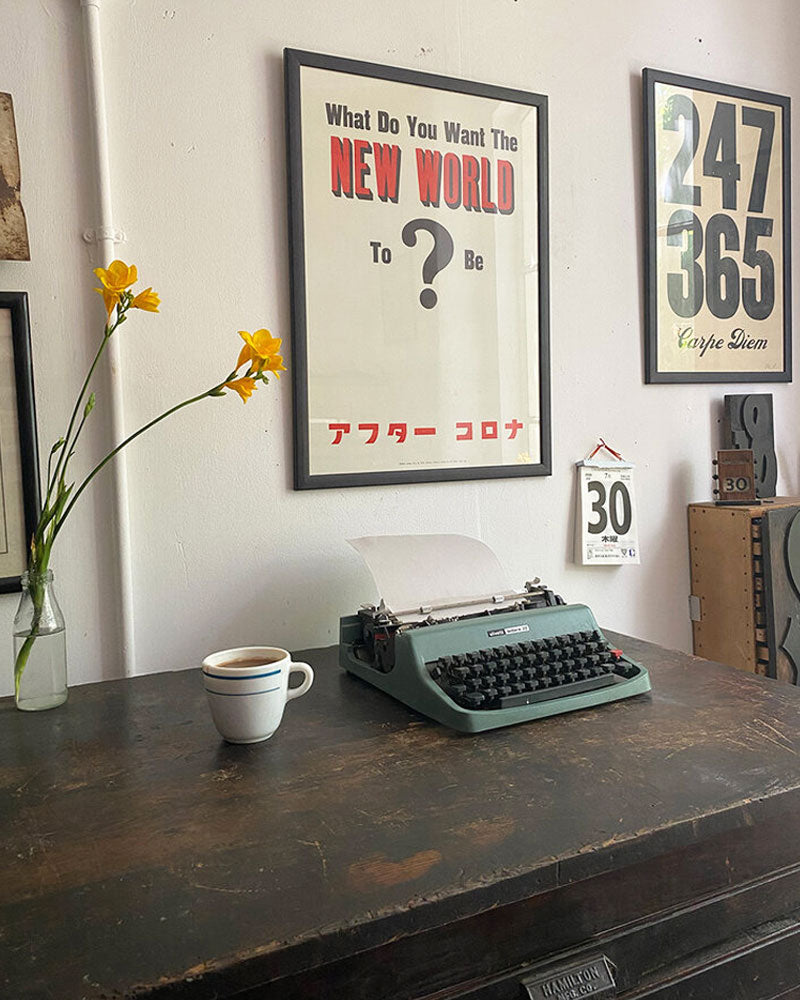 NEW WORLD poster is among a series of collaborations between the Printer’s Devil and invited creatives, this one being Yuichi Munehiro, the owner of Hightide Store DTLA! Yuichi invites you to add your own thoughts and drawings to the poster, for an opportunity to create a truly original time capsule.