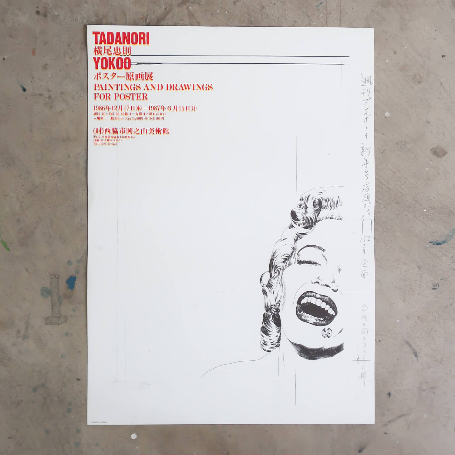 A reprint poster for 1986 exhibition Paintings and Drawings for Poster of Tadanori Yokoo, designed by the artist himself.