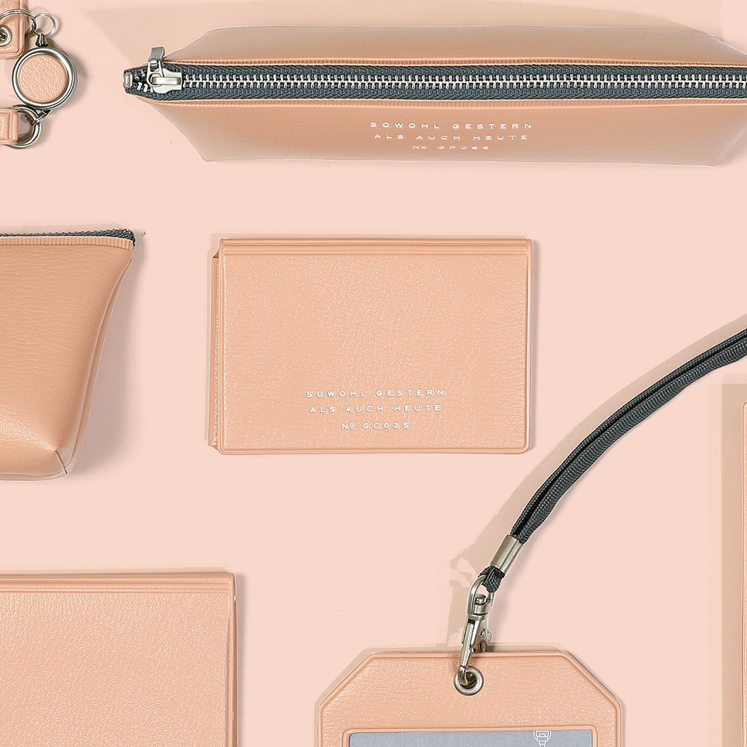 The card case is made of a lightweight, stain- and water-resistant PVC in a soft hued colors and classic black, with a white foil stamping. The double-sided pocket can hold credit cards, and the folded pocket with a window hole can hold a commuter pass, allowing you to neatly carry them all in one place.