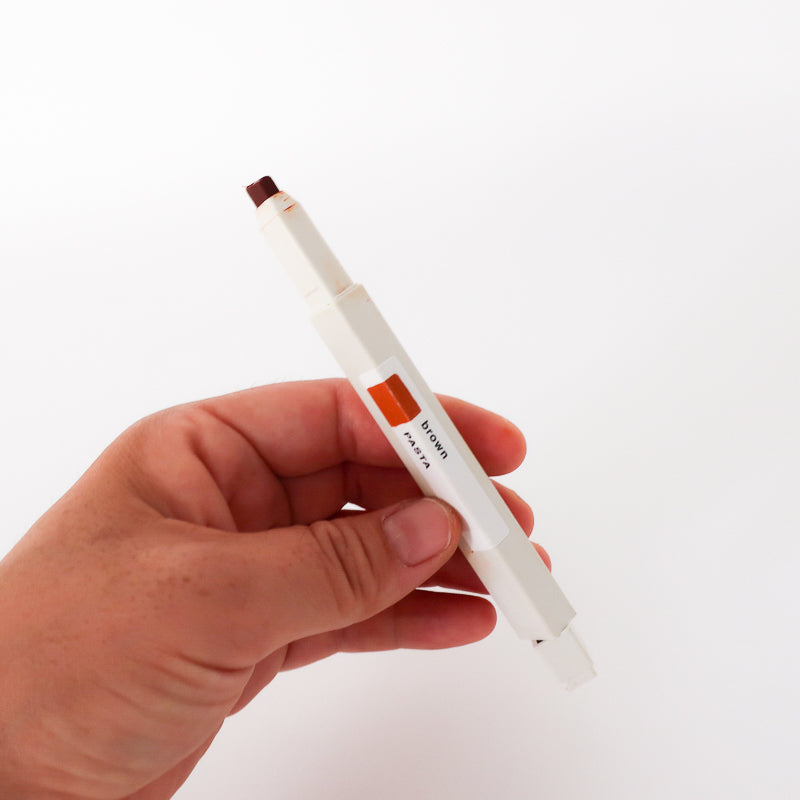 Made of minimal-style plastic barrel with a bright water-based color core, Pasta draws smoother than a crayon but blends like pastel. You can create texture when you hold it with a light touch, but can also create fine details using its 4x7mm rectangular core. Included in the refillable barrel set are stickers to indicate each color. To draw, take off the top, and screw the bottom to push the color out to your desired length.