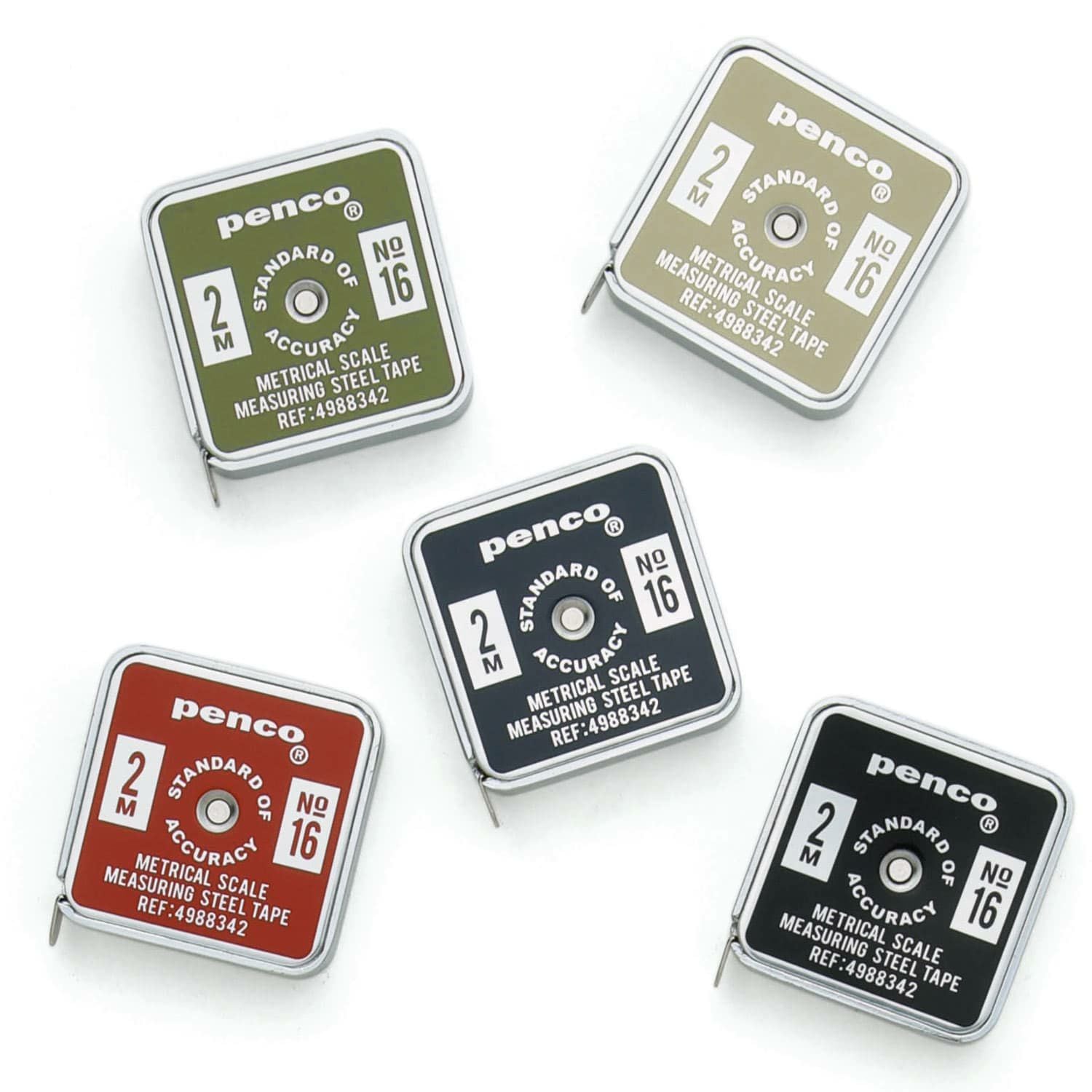 A pocket-size metric tape measure by Penco. Available in 4 colors.