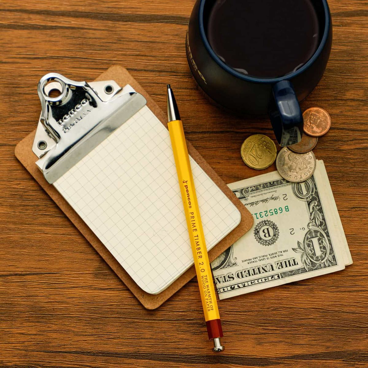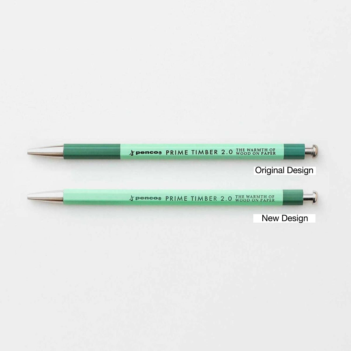 A mechanical pencil with a wooden body and a thick 2mm lead by Penco, updated in 2022. Comes with a sharpener and one B lead.