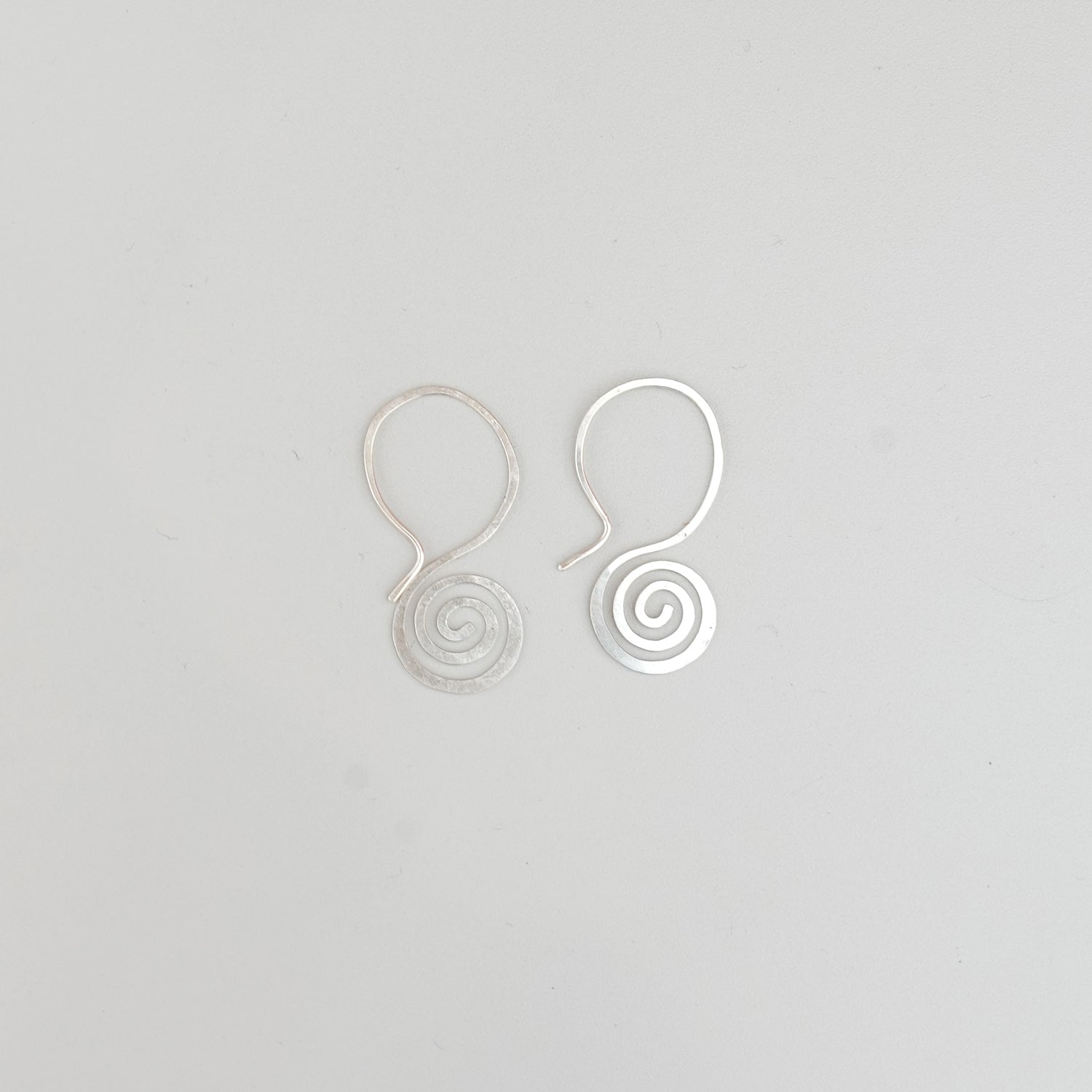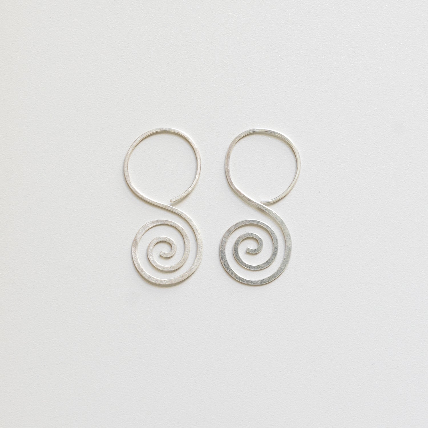 Hand-forged fine silver Spiral Drop earrings by Rest Objects