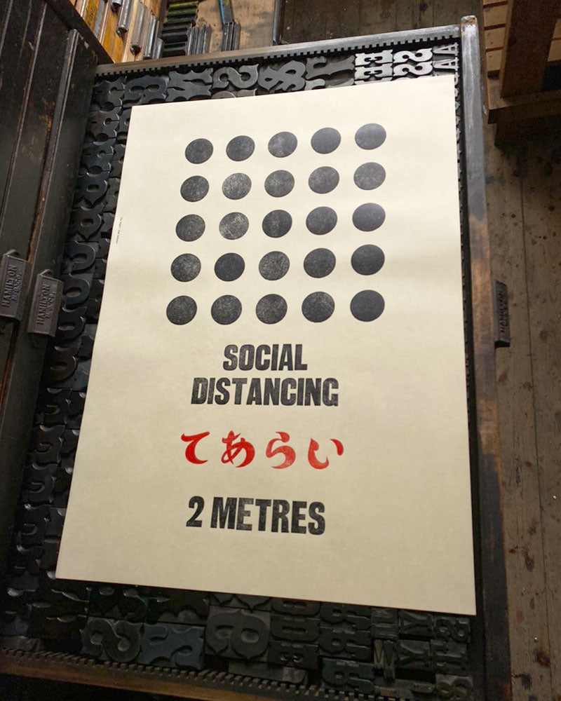 One of several posters for the project "Lockdown Lockup" created by The Printer’s Devil, a wood-block printing and letterpress studio based in London. The posters are created in response to the global COVID-19 pandemic "lockdown," with "lockup" of hand-set type that is "locked in place" to be printed on the press.