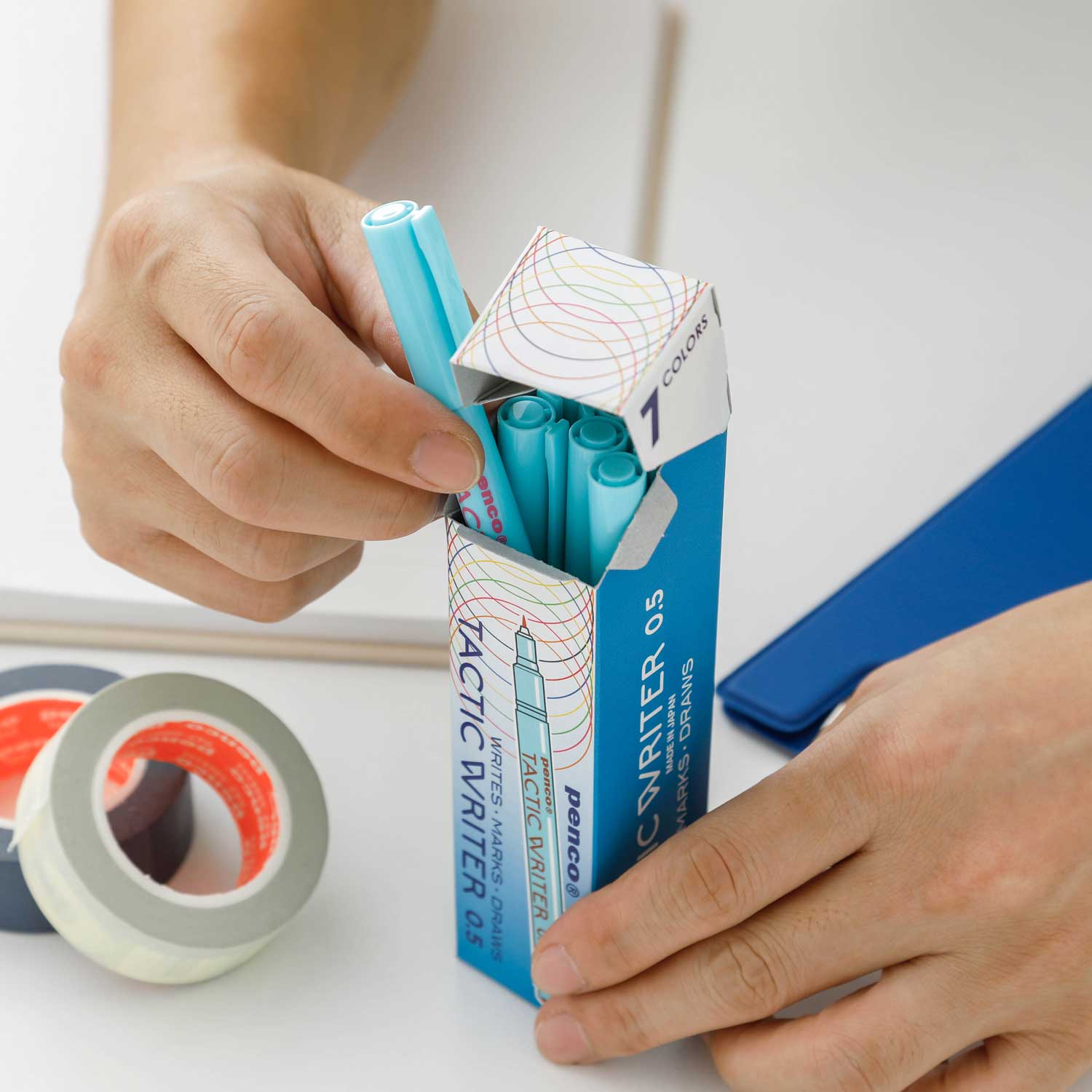 A set of 7 water-based color ink pens with a 0.5mm tip by Penco.