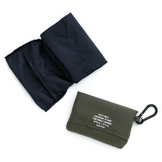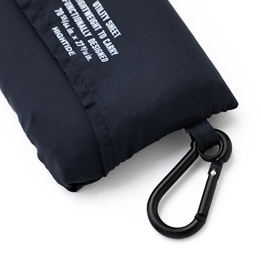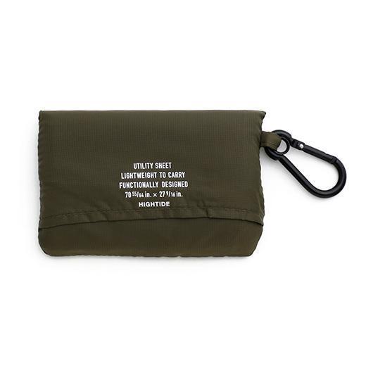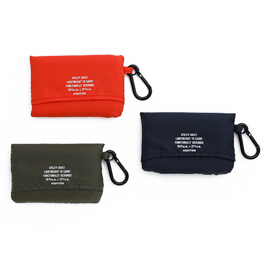 A portable nylon picnic blanket with a matching carabiner by Hightide.
