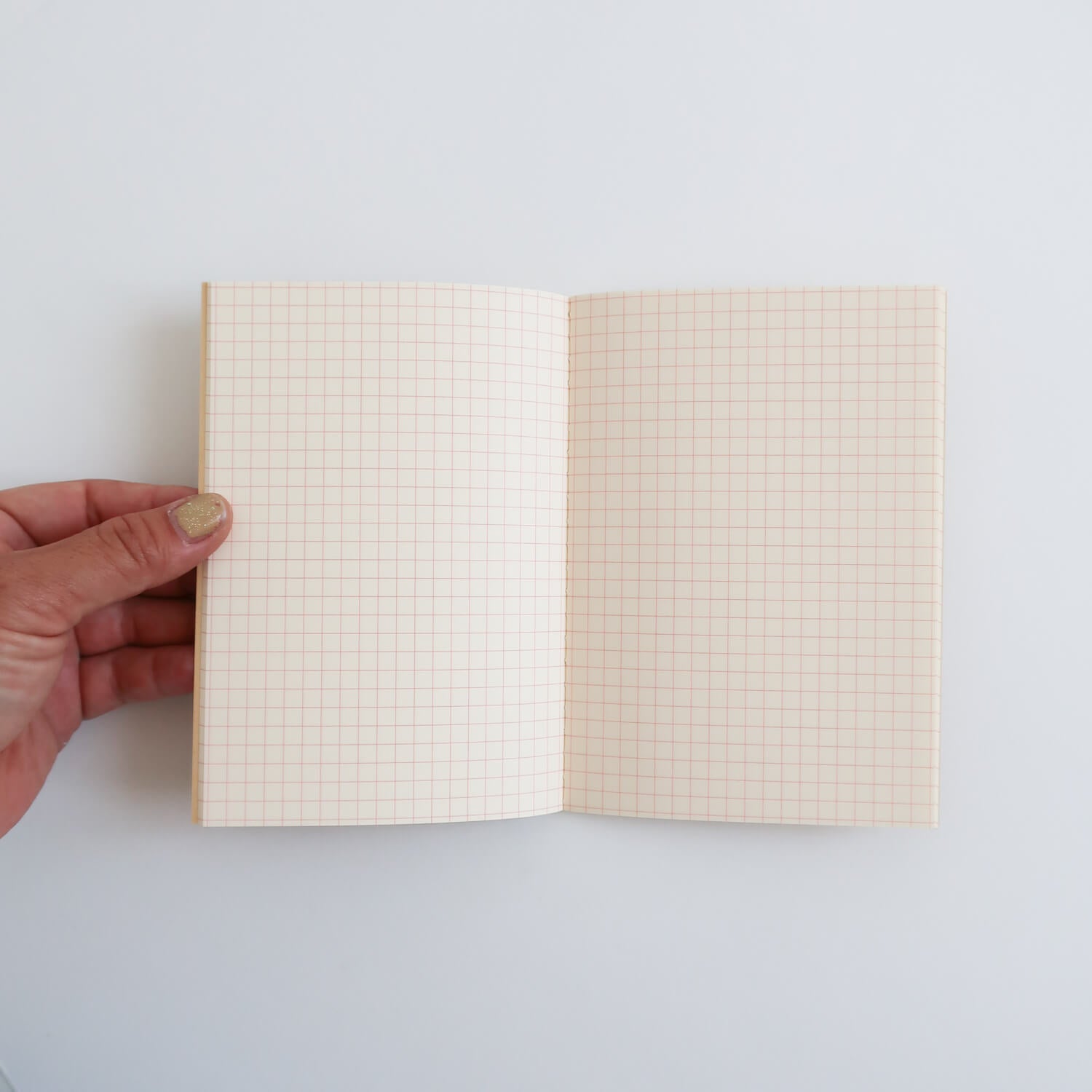 Very smooth interior pages are acid-free and of premium quality, fit for writing instruments of any type. The signature vermilion red grid of 5mm runs through the entire inner pages of warm-white paper. No worries about bleeding or feathering of ink when using fountain pens. The stitch binding allows for the book to lay flat when opened.