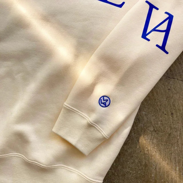 A Fleece-lined sweatshirt with a new typography logo and circle motif logo.
