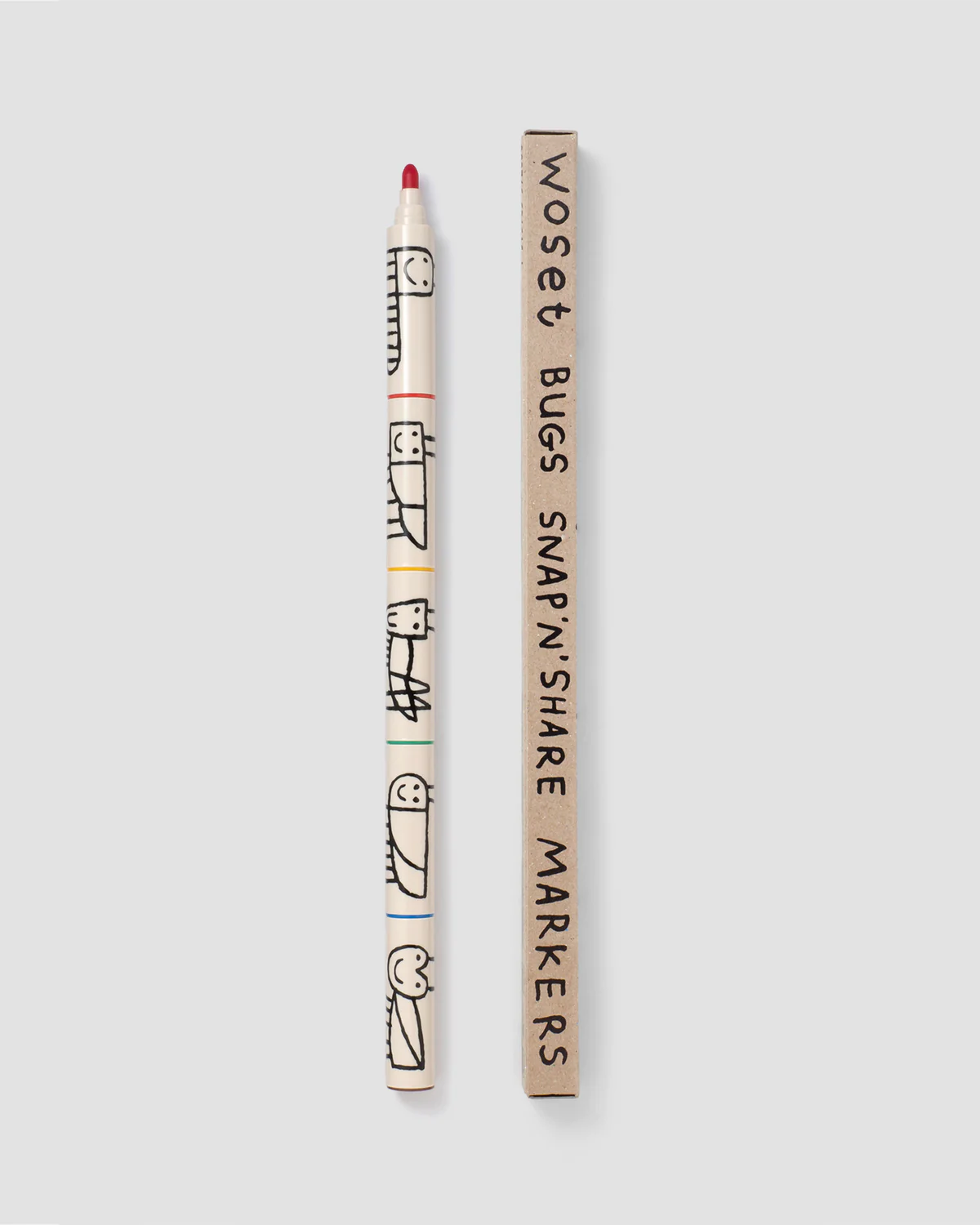 The Woset Bug’s favorite creative tools are these water-based ink Snap N’ Share Markers. When these five uniquely different colored markers are snapped together, they make one large, easy-to-use marker. But, when snapped apart, it lets five different bugs all work together to get even the biggest creative ideas made.