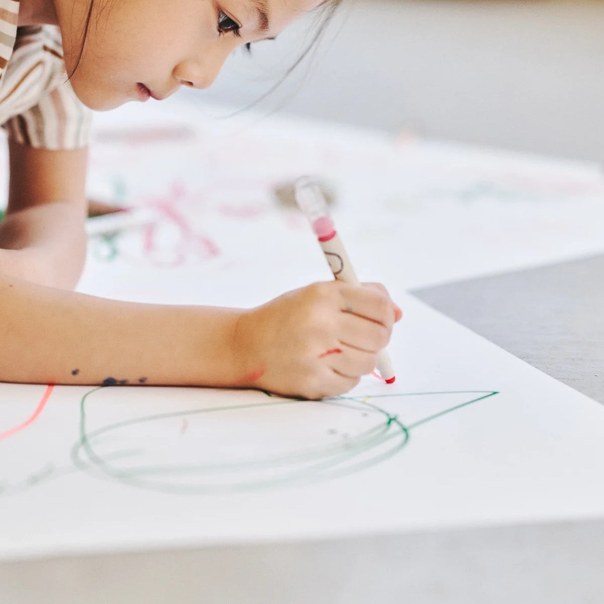Because Jonee's Well Rounded Markers are built with a smash-resistant tip and a rounded end that allows you to draw at all angles. The set also has an attachment to click together two markers to create unique patterns and playful color combinations.